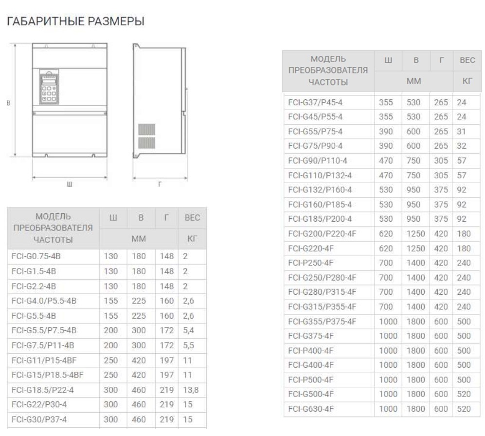 Преобразователь частоты INSTART серии FCI обладает следующими характеристиками: