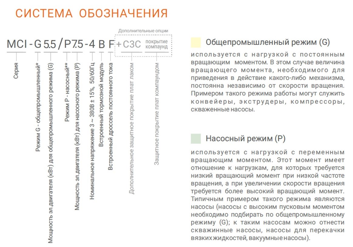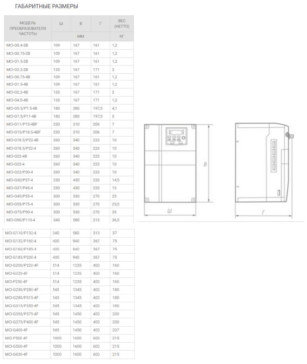 Преобразователь частоты INSTART серии MCI обладает следующими характеристиками: