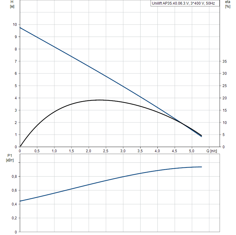 Насос может комплектоваться однофазным (1×230 В) или трехфазным (3×400 В) асинхронным электродвигателем.