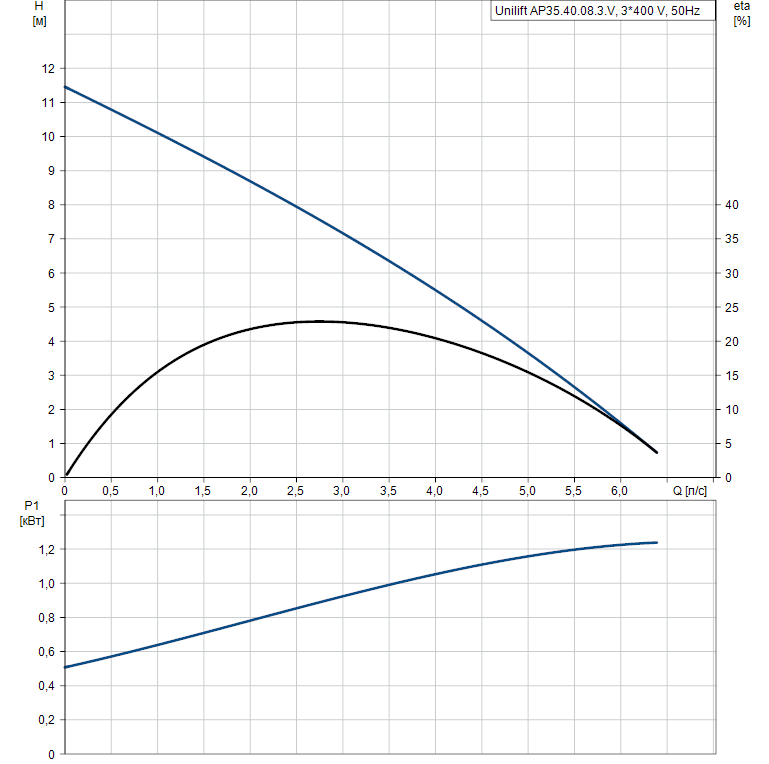 Насос может комплектоваться однофазным (1×230 В) или трехфазным (3×400 В) асинхронным электродвигателем.